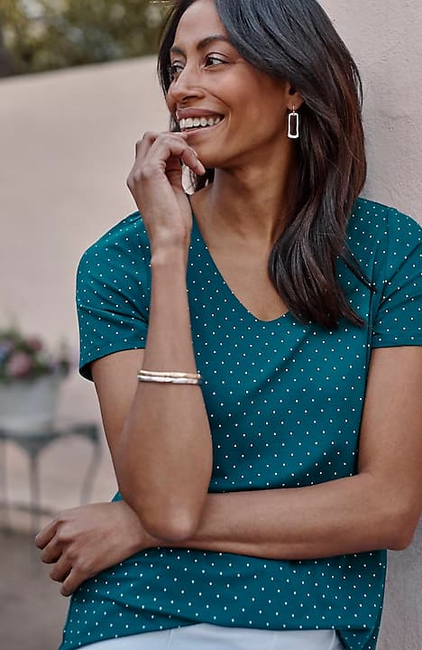 Our best-selling V-neck tee, now in a short-sleeved, supersoft style designed to welcome warmer days.